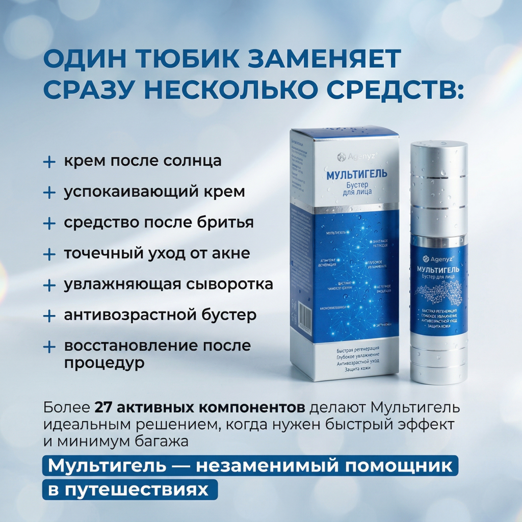 Мультигель — настоящий концентрат молодости и восстановления благодаря мощному пептидному комплексу.