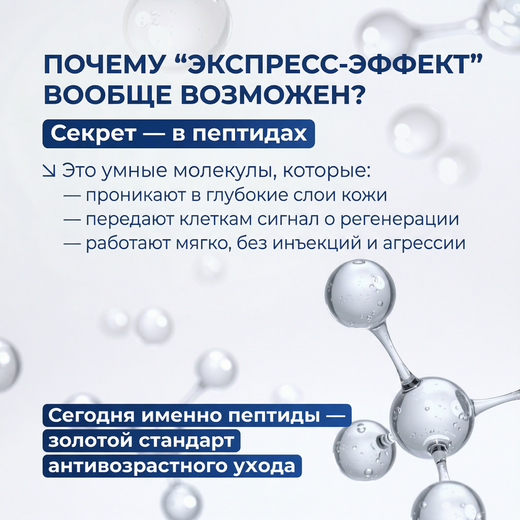 - Комплекс передовых пептидов оказывает эффект лифтинга и разглаживания морщин.